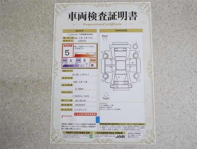 トヨタ車のプロの検査員が実施した「車両検査証明書」付き!車両の状態をこれ1枚でチェックできます!