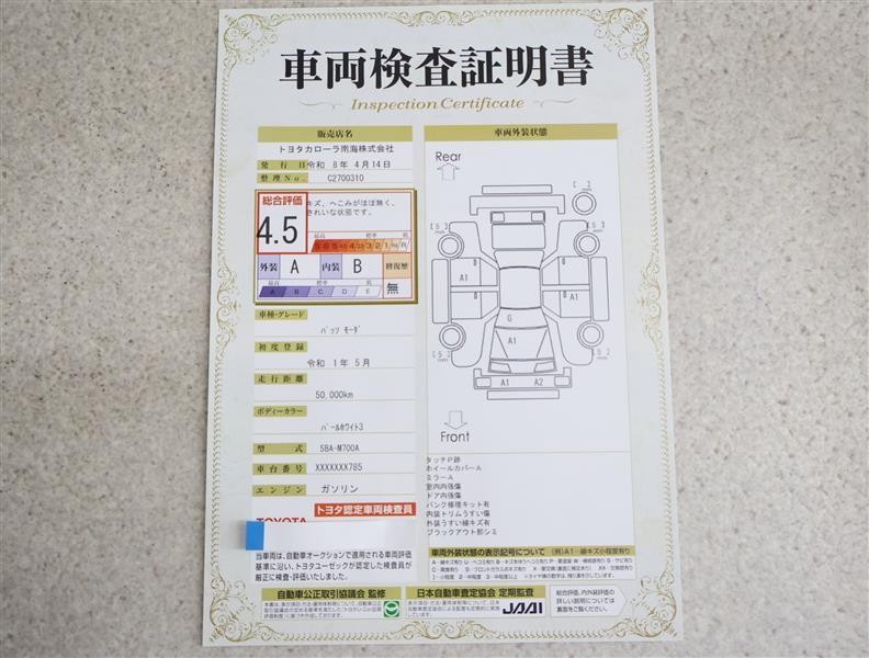 トヨタ車のプロの検査員が実施した「車両検査証明書」付き!車両の状態をこれ1枚でチェックできます!