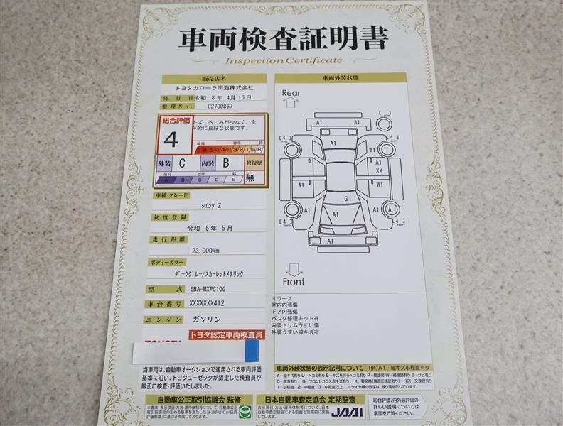 車両検査証明書付きです!だれでも中古車の状態がすぐにわかるよう、車のプロが客観的にチェック。車両の状態やわずかなキズも正確にお伝えします。