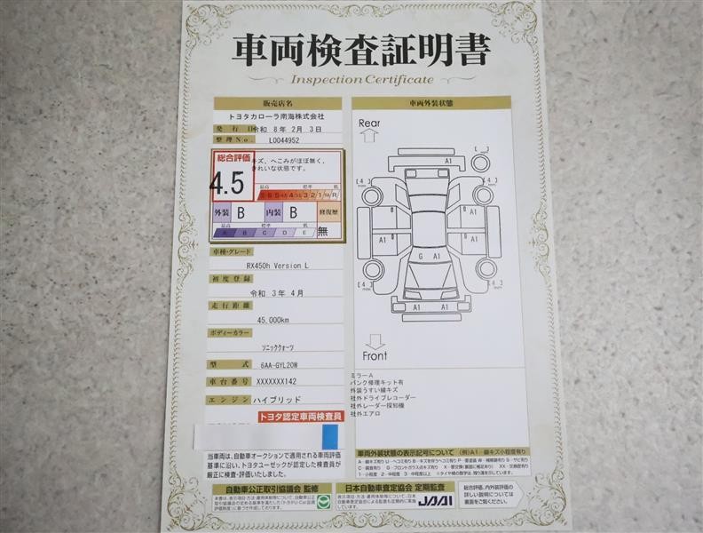 トヨタ車のプロの検査員が実施した「車両検査証明書」付き!車両の状態をこれ1枚でチェックできます!