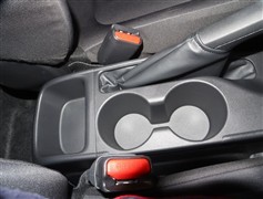 運転席のシートとハンドルは、間にドリンクホルダーがついています。