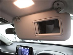 バニティミラー付サンバイザー。前席のサンバイザー裏に装備される小さなミラーです。女性がお化粧をチェックするのに最適、ということでバニティ(vanity=化粧テーブル)ミラーと呼ばれてます。