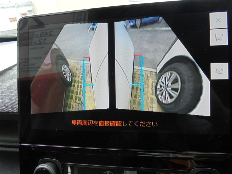 ☆両サイドビューです!左右両サイドに設置されたカメラからの映像を表示し、車両側方の安全確認や狭い小路での接触回避などの操作を補助するモードです。