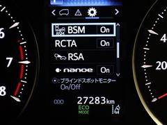 車線変更時などに、ドアミラーでは確認しにくい後側方エリア(ブラインドスポット)に存在する車両をレーダーで検知。警告サインをドアミラー等に表示することで、運転者に注意喚起する機能。