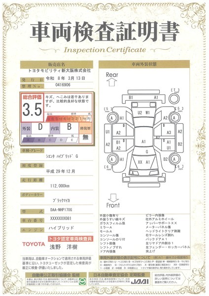 トヨタ自動車認定の検査員が一台一台の車を厳正に検査しその状態を点数と図解で表示した検査証明書をお付けしております!安心の中古車選びは当社で!