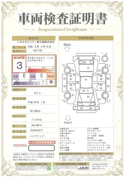 ※ 「修復歴あり」の場合、修復部位の詳細につきましては、販売店へお問い合わせください。