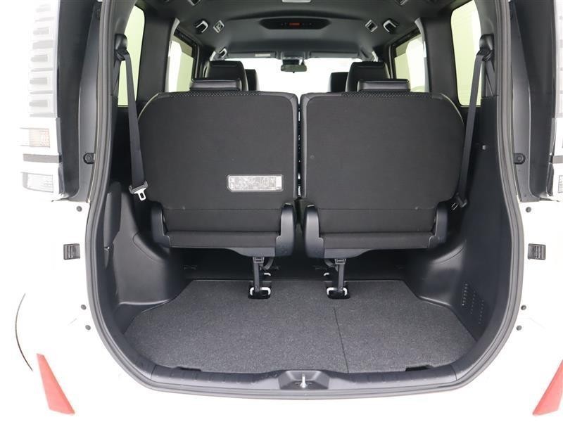 3列目使用時のトランクスペースです。トランクフロアの下には深さタップリの収納スペースがあります。3列目シートを両サイドに跳ね上げ格納すれば、レジャー用品もたっぷり積める広いトランクスペースになりま