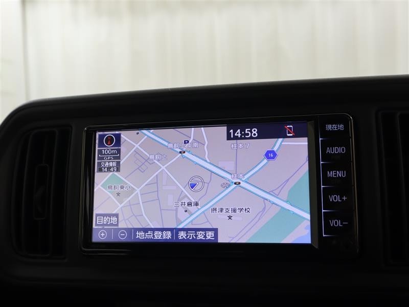 トヨタ純正ナビゲーションを装備しております。知らない処に行くのには、道順は勿論のこと、所要時間や渋滞情報はあると便利ですね。