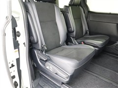 <3列目>サードシートは、簡単に折りたためるワンタッチスペースアップシートです。車内に乗り込まずにラクに行えます。また、サードシート中央席ヘッドレストを取り外した際の収納スペースもあります!!