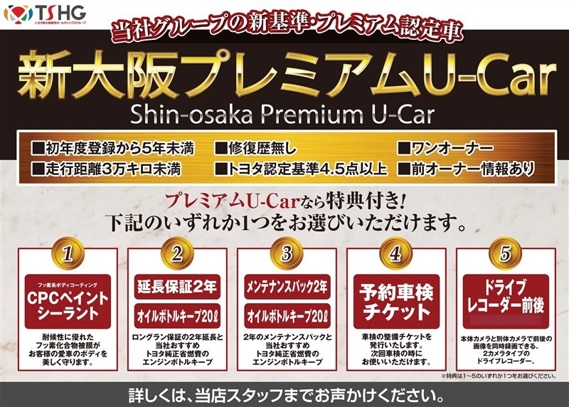 【当社グループの新基準・プレミアム認定車】新大阪プレミアムU-Car 選べる特典付き車両です。