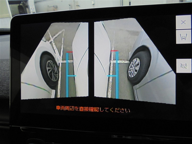 ☆両サイドビューです!左右両サイドに設置されたカメラからの映像を表示し、車両側方の安全確認や狭い小路での接触回避などの操作を補助するモードです。