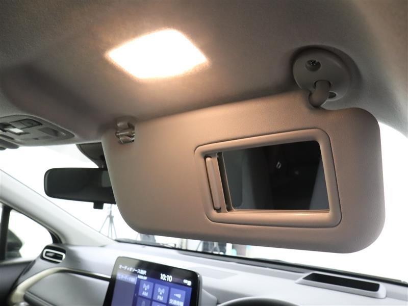 ☆バニティミラー付サンバイザー。前席のサンバイザー裏に装備される小さなミラーです。女性がお化粧をチェックするのに最適、ということでバニティ(vanity=化粧テーブル)ミラーと呼ばれてます。