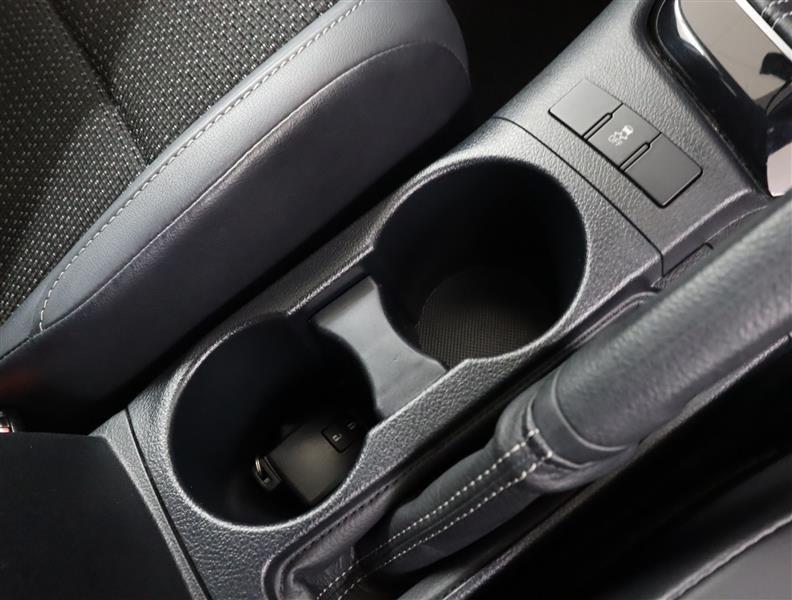 シフトレバーの前に小さな物入れがあり、ふた付きなのでスッキリ収納ができますね