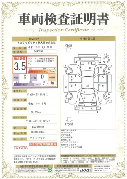 車両検査証明書付きです!だれでも中古車の状態がすぐにわかるよう、車のプロが客観的にチェック。車両の状態やわずかなキズも正確にお伝えします。