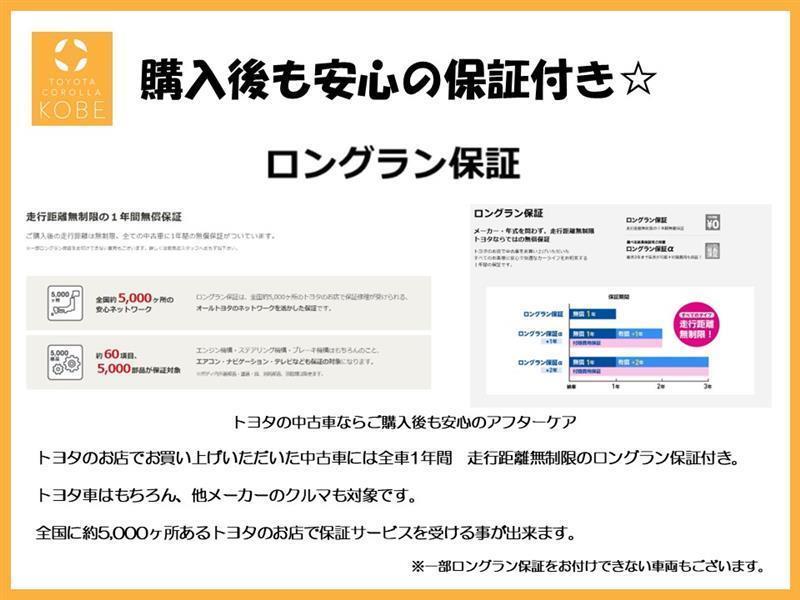 安心のトヨタの中古車は、ご購入後も安心のトヨタロングラン保証付き。別途有償にて選べる延長保証(+1年、+2年)もお選び頂けます。