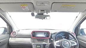 フロントガラス上部に設置されたカメラとフロントグリルに設置されたレーザーで色々な情報を検知し衝突回避を支援、被害軽減に役立つスマートアシストを作動