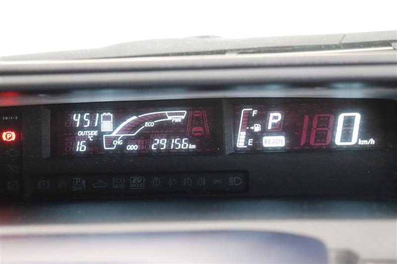ハイブリッドバッテリーの充電状況など色々な情報がわかりやすく表示されるメーター。気になる燃費なども表示されています。