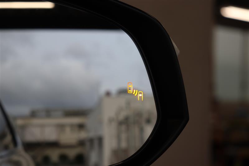 車線変更時などに、ドアミラーでは確認しにくい後側方エリア(ブラインドスポット)に存在する車両をレーダーで検知。警告サインをドアミラー等に表示することで、運転者に注意喚起する機能。