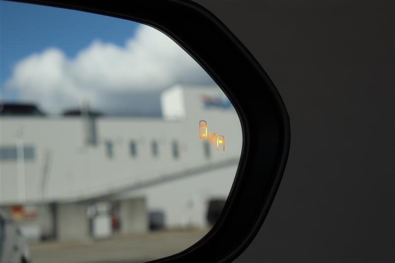 車線変更時の見えにくい斜め後方の死角からの車両接近をドアミラーのランプでお知らせしてくれるブラインドスポットモニター