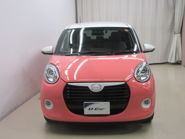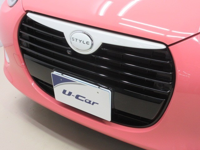 お洒落なピンクとホワイトのツートンカラーの『ダイハツ ブーン』。ドラレコ・ナビも付いています。