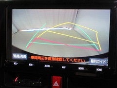 バックでの車庫入れはハンドルと連動したガイドラインが出る「バックガイドモニター」がサポートいたします。