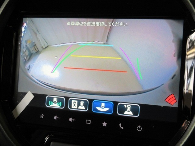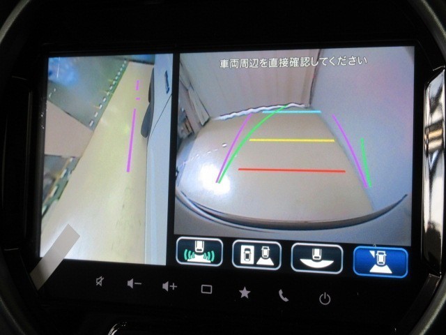 全方位モニター付きです。車両を上から見たような映像をナビゲーション画面に表示。運転席からの目視だけでは見にくい、車両周辺の状況をリアルタイムでしっかり確認できます。