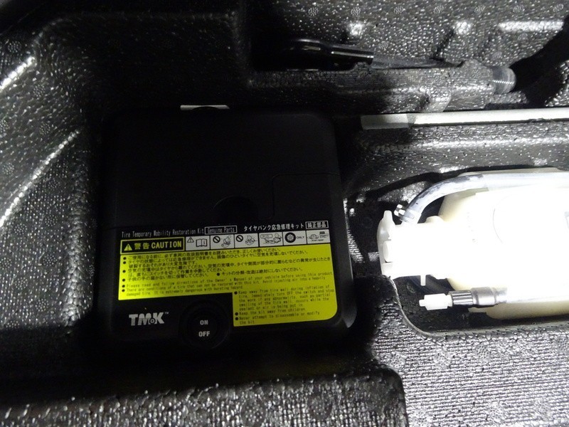 パンク修理キット付き。スペアタイヤの代わりにパンク修理キットが備え付けられています。
