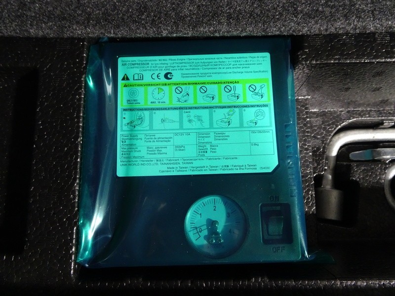 パンク修理キット付き。スペアタイヤの代わりにパンク修理キットが備え付けられています。