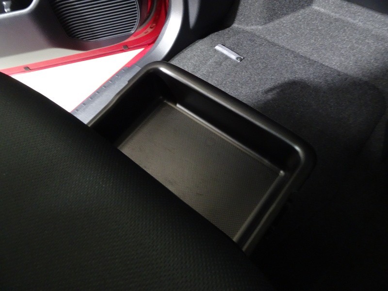 靴などを入れておくのに便利な助手席シート下の収納トレイ。