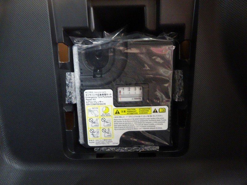 パンク修理キット付き。スペアタイヤの代わりにパンク修理キットが備え付けられています。