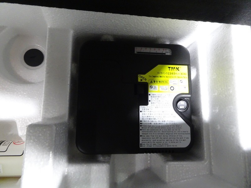 パンク修理キット付き。スペアタイヤの代わりにパンク修理キットが備え付けられています。
