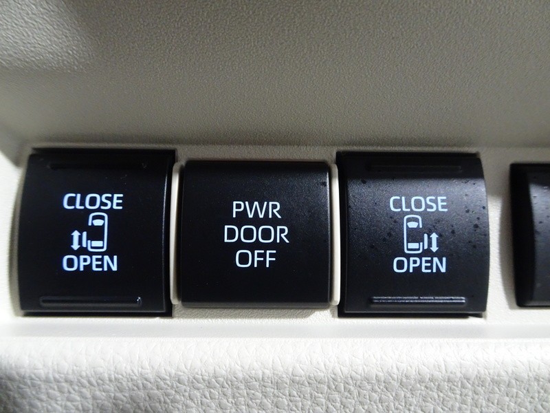 狭いスペースでも乗り降り楽々!お子様に安全な挟み込み防止機能付き!両側パワースライドドアの開閉スイッチ。