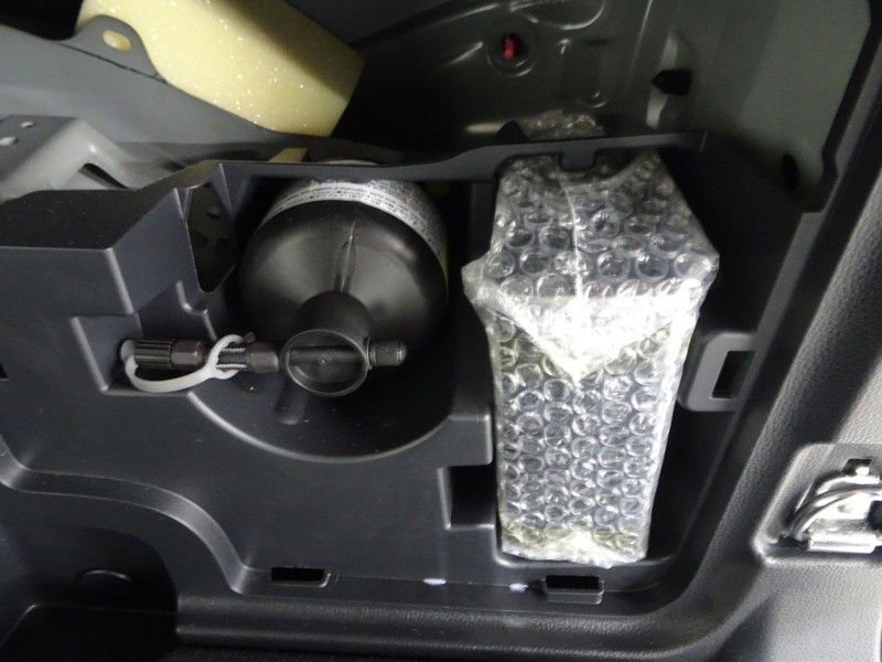 パンク修理キット付き。スペアタイヤの代わりにパンク修理キットが備え付けられています。