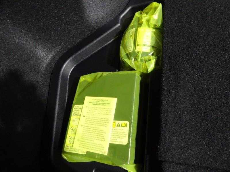 パンク修理キット付き。スペアタイヤの代わりにパンク修理キットが備え付けられています。