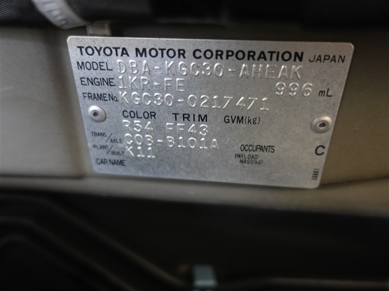 車両ナンバー: