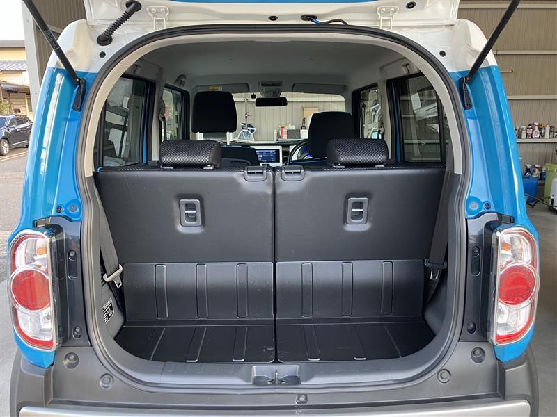シートを外して室内をすみずみまで洗浄&消臭。ボディやタイヤはもちろん、エンジンルームまで洗浄しています。