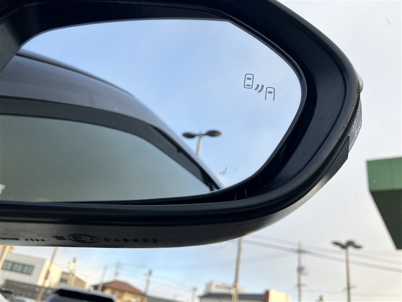 車線変更時などに、ドアミラーでは確認しにくい後側方エリア(ブラインドスポット)に存在する車両をレーダーで検知。警告サインをドアミラー等に表示することで、運転者に注意喚起する機能。