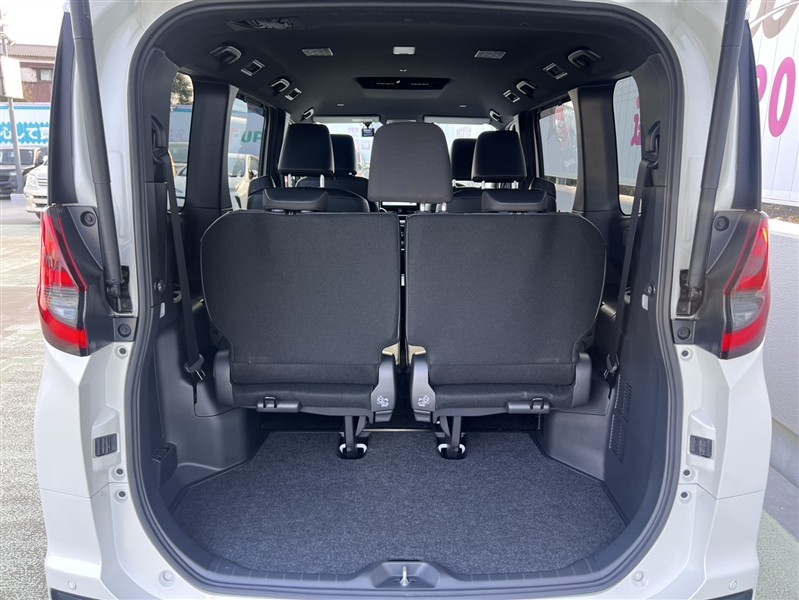3列目シートは跳ね上げ式で折りたたみ可能です。キャンプ用品など大きな荷物もばっちり収納可能です!