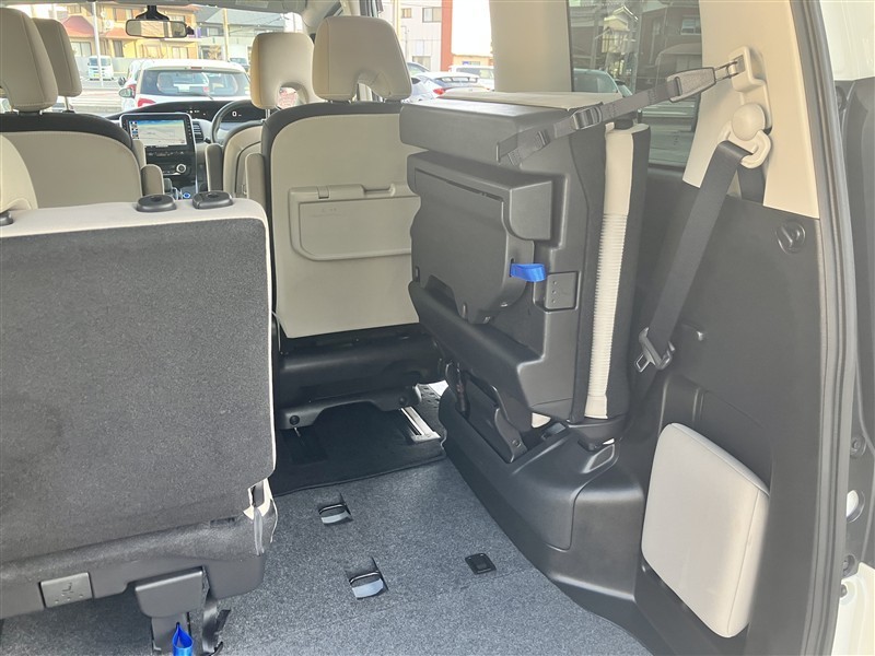3列目シートは跳ね上げ式で折りたたみ可能です。キャンプ用品など大きな荷物もばっちり収納可能です!