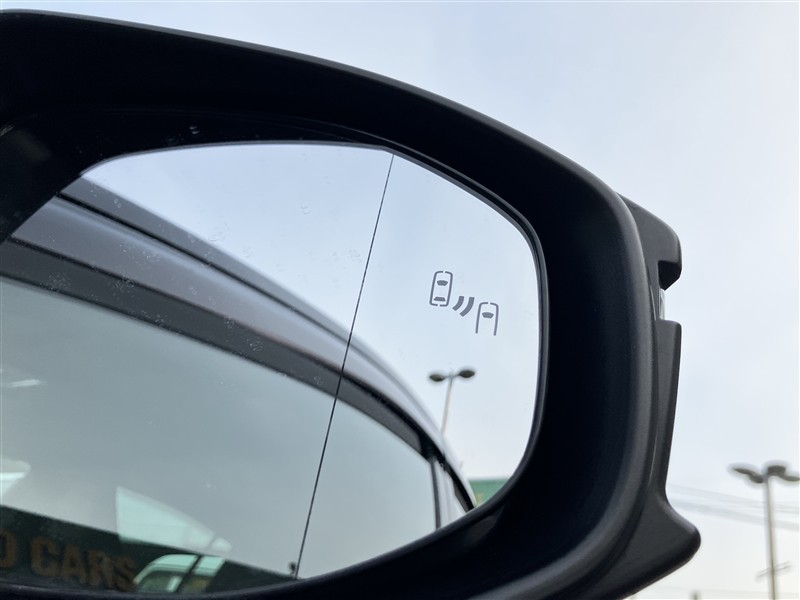 車線変更時などに、ドアミラーでは確認しにくい後側方エリア(ブラインドスポット)に存在する車両をレーダーで検知。警告サインをドアミラー等に表示することで、運転者に注意喚起する機能。