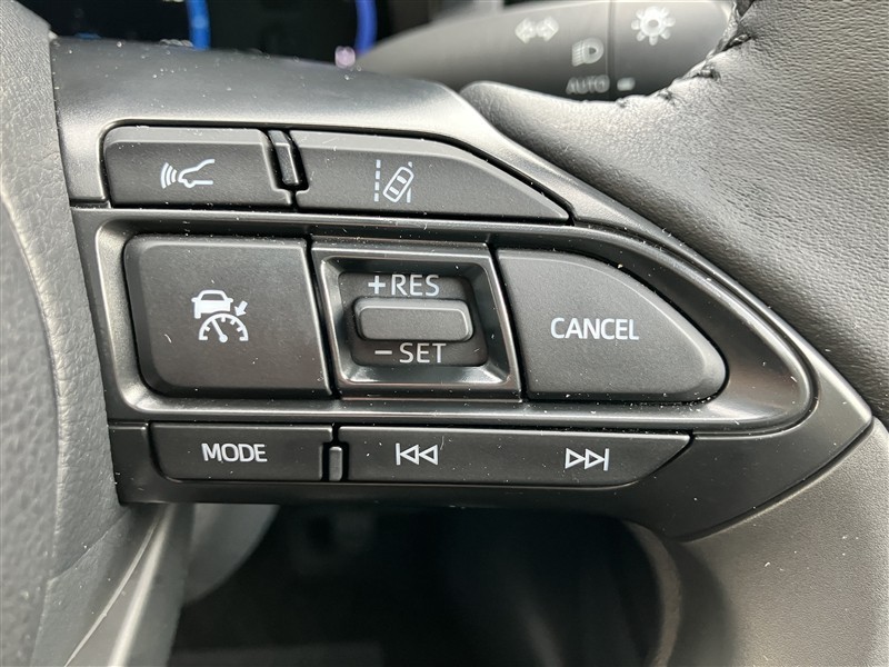 アダプティブクルーズコントロール機能付きです。走行中に先行車の様子を検知しながら、設定した車速の範囲内で先行車との距離のキープを支援します。詳細は販売店スタッフまでおたずねください。