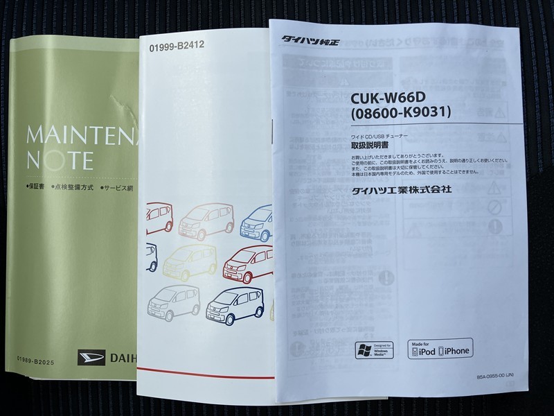 メンテナンスノート、車両本体・ナビオーディオの説明書つき!困ったときでも説明書があるので安心です。