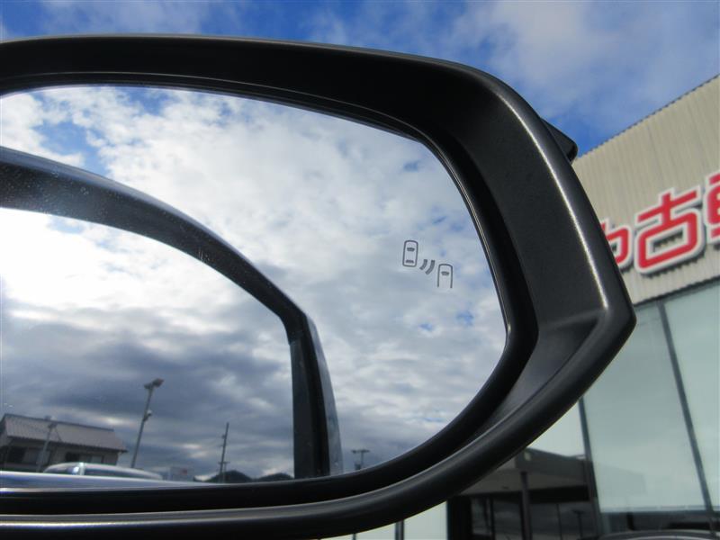 車線変更時などに、ドアミラーでは確認しにくい後側方エリア(ブラインドスポット)に存在する車両をレーダーで検知。警告サインをドアミラー等に表示することで、運転者に注意喚起する機能。