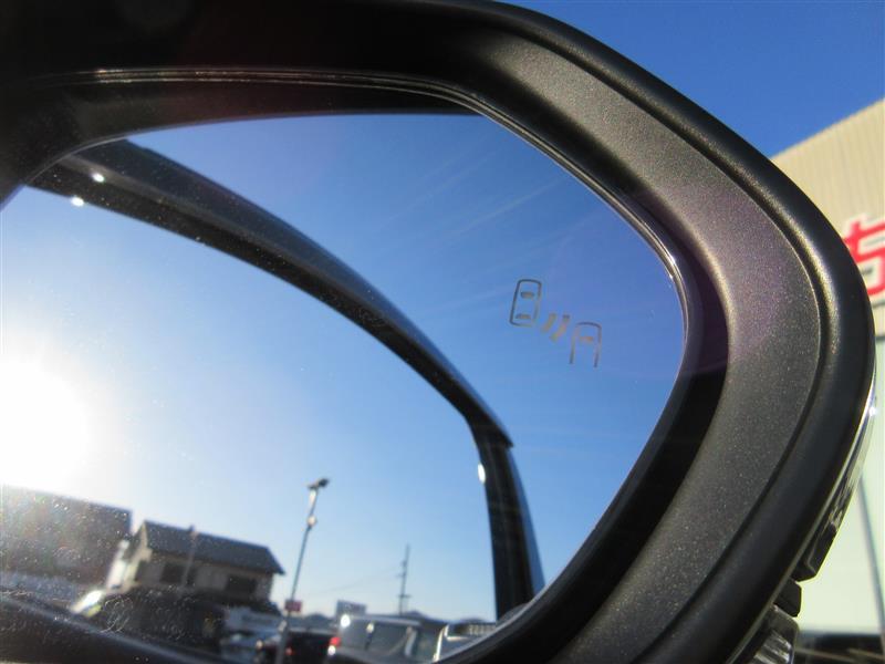車線変更時などに、ドアミラーでは確認しにくい後側方エリア(ブラインドスポット)に存在する車両をレーダーで検知。警告サインをドアミラー等に表示することで、運転者に注意喚起する機能。