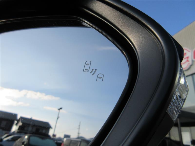 車線変更時などに、ドアミラーでは確認しにくい後側方エリア(ブラインドスポット)に存在する車両をレーダーで検知。警告サインをドアミラー等に表示することで、運転者に注意喚起する機能。