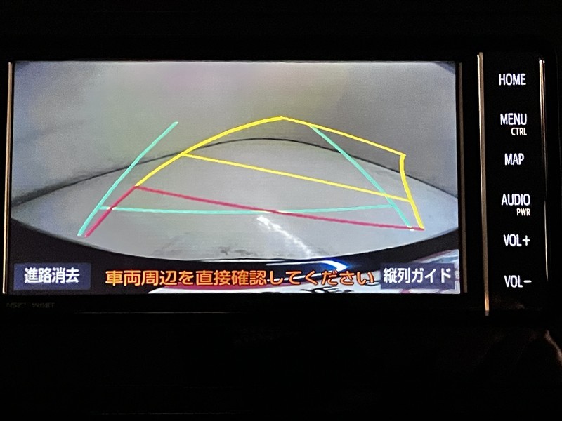ハンドル操作に連動してガイドラインが変化するバックモニターを搭載しています。クルマは構造上多くの死角が有る為、とても便利な機能です。補助の為の装備なので、目視での確認も大切です。