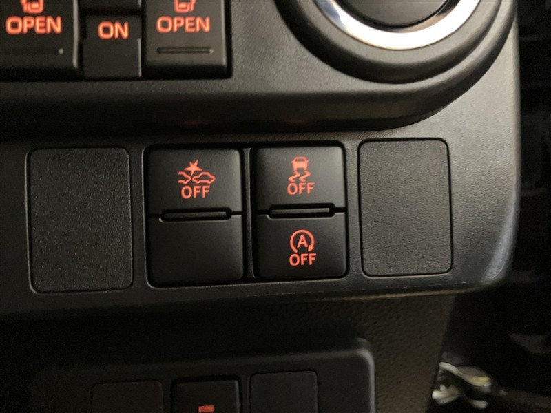 スマートアシスト、VSC・TRC、アイドリングストップ等のスイッチが配置されてます。