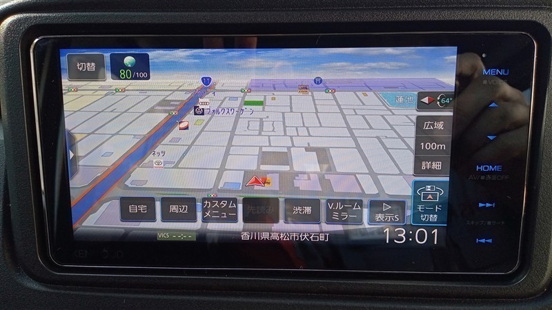 ナビ付きです。Bluetoothも付いていますし、フルセグでテレビも視聴出来て、CD・DVDの再生も出来ます。