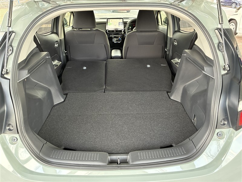 ワンタッチのレバー操作で後席の背もたれを倒していただくと長物もラクラク、広大なスペースができます!
