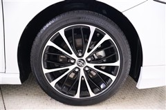 切削光輝+ブラック塗装の純正のアルミホイールを装着しています。タイヤサイズは235/45R18です。
